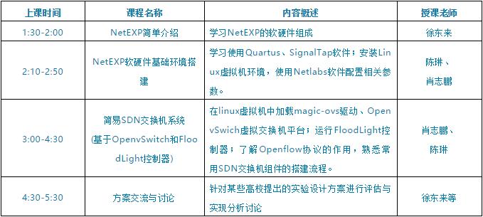 本次培訓(xùn)主要介紹了NetEXP軟硬件基礎(chǔ)環(huán)境的搭建,詳細(xì)剖析了三個不同層次的網(wǎng)絡(luò)教學(xué)案例,給大家展示了一個低成本、易部署的SDN交換機演示環(huán)境,講解了學(xué)生可以如何參與整個實驗的過程。