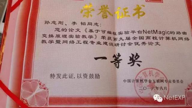 在此次教學(xué)建設(shè)研討會(huì)上,國(guó)防科學(xué)技術(shù)大學(xué)的孫志剛和李韜老師的論文《基于可編程實(shí)驗(yàn)平臺(tái)NetMagic的路由交換原理實(shí)驗(yàn)教學(xué)》獲得了優(yōu)秀論文一等獎(jiǎng),說(shuō)明了網(wǎng)絡(luò)實(shí)驗(yàn)教學(xué)的新方向的發(fā)展獲得了業(yè)界老師們的一致肯定。
