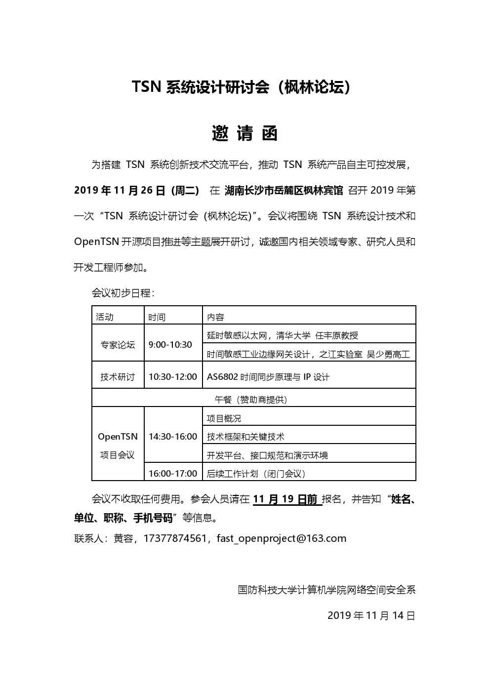 TSN系統(tǒng)設(shè)計(jì)論壇(楓林論壇)邀請(qǐng)函