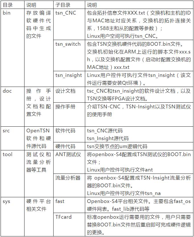 (4)TFcard是Openbox-S4的“內嵌硬盤”,用于保存Boot.bin文件,以及ARM CPU的操作系統內核鏡像以及應用程序(FAST APP)代碼。OpenTSN環境中所有openbox-S4上都需要包含TFcard目錄中得內容。