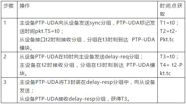 時間從設(shè)備與時間主設(shè)備的交互并獲取四個關(guān)鍵時間點的詳細方法如下表所示,時間點標記參見圖1。