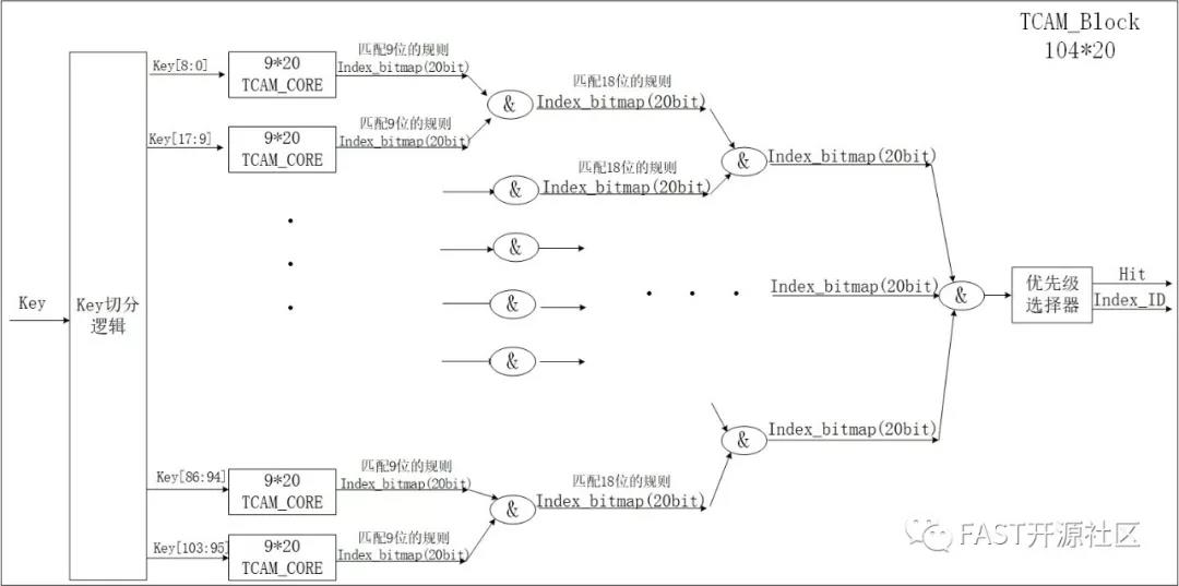 針對FAST前期版本支持流表項條目少的不足,目前對查找算法進行了改進,實現了XS-TCAM-104x320 IP,其優點如下: