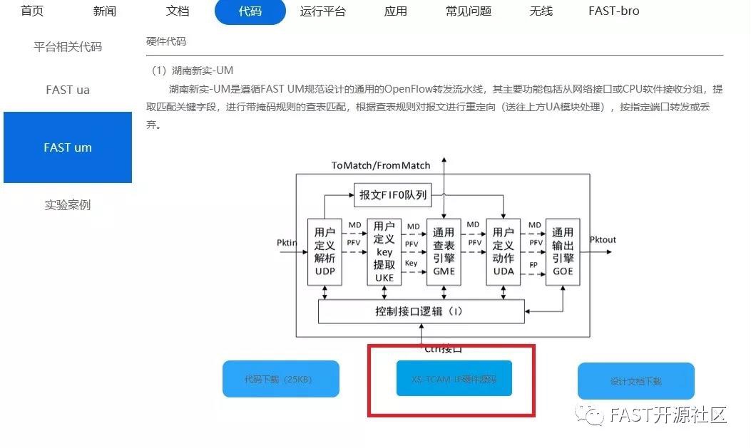 目前XS-TCAM-104x320 IP代碼可訪問www.fastswitch.org,選擇“代碼”選項卡,點擊FAST UM,點擊如下按鈕開始下載: