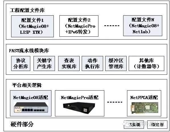 2011年開始,國防科技大學、北京郵電大學和東南大學等單位相關的課題組基于可編程交換平臺NetMagic08進行了SDN實驗平臺的開發,形成了支持openflow1.0/1.3的SDN交換機。并采用多核CPU+FPGA的架構(Netmagic Pro平臺),實現了支持SDN數據平面功能擴展的Labelcast交換機以及軟件定義隧道交換機(SDTS)等成果。2016年,課題組基于上述成果形成FAST(Fpga bAsed Sdn swiTch)開源項目,支持國內SDN交換技術的創新研究和相關的教學工作。