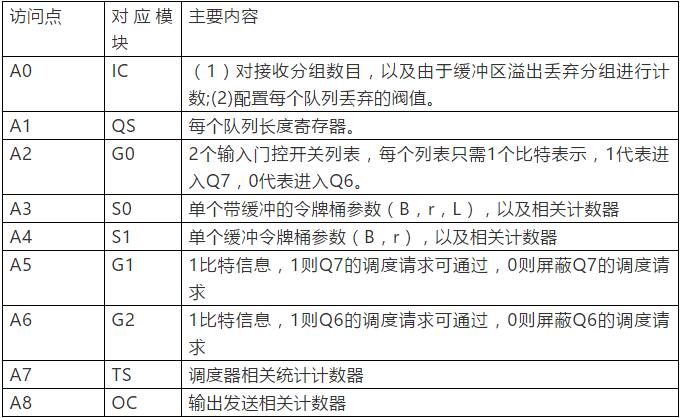 根據CQF-UDO的實現模型,共有9個訪問點需要軟件進行管理配置。這些訪問點共同組成了CQF-UDO數據轉發的抽象。用戶可以根據不同的軟件配置實現輸出接口的資源預約配置,流量測量和整型,以及轉發狀態檢測等功能。各訪問點的詳細信息如下表所示。